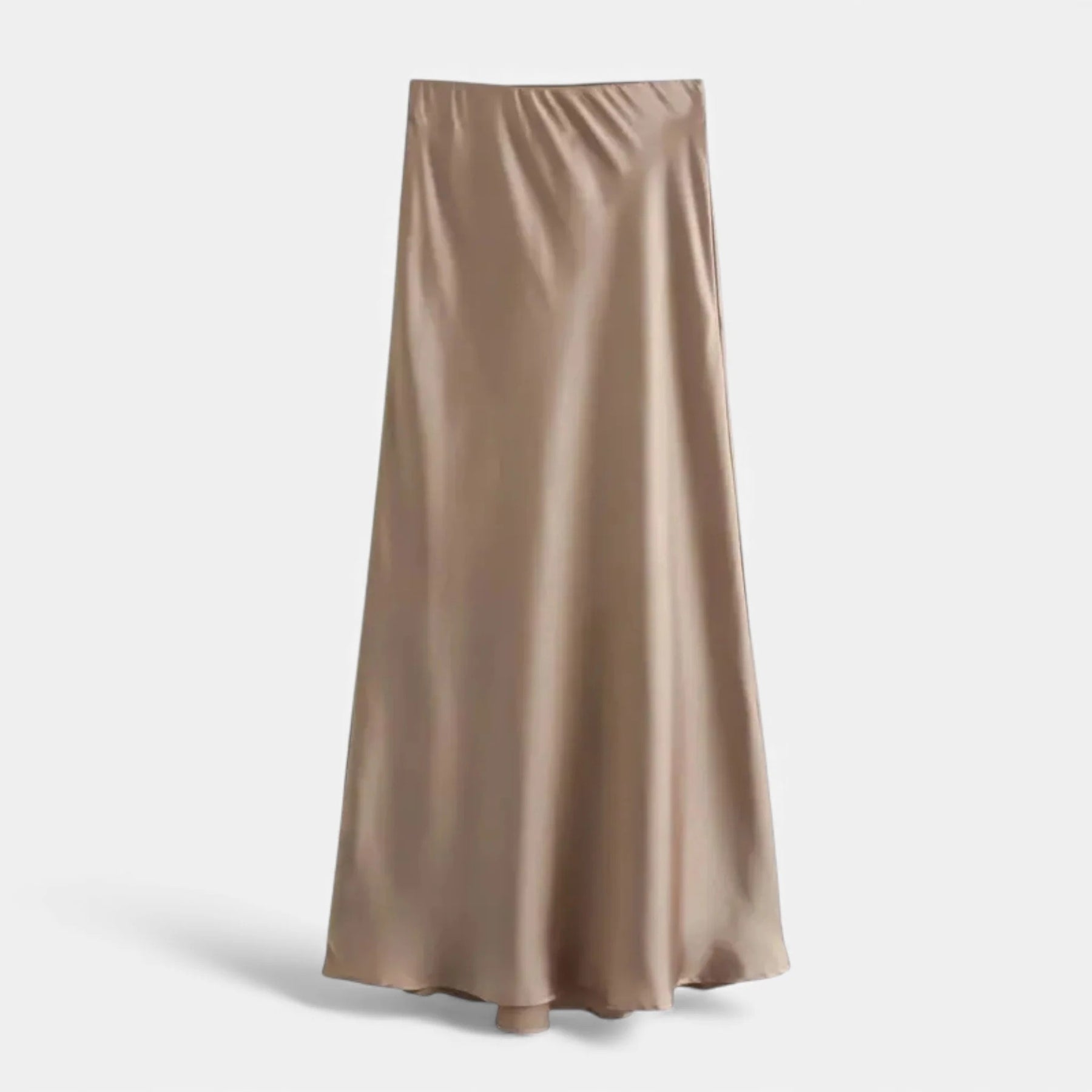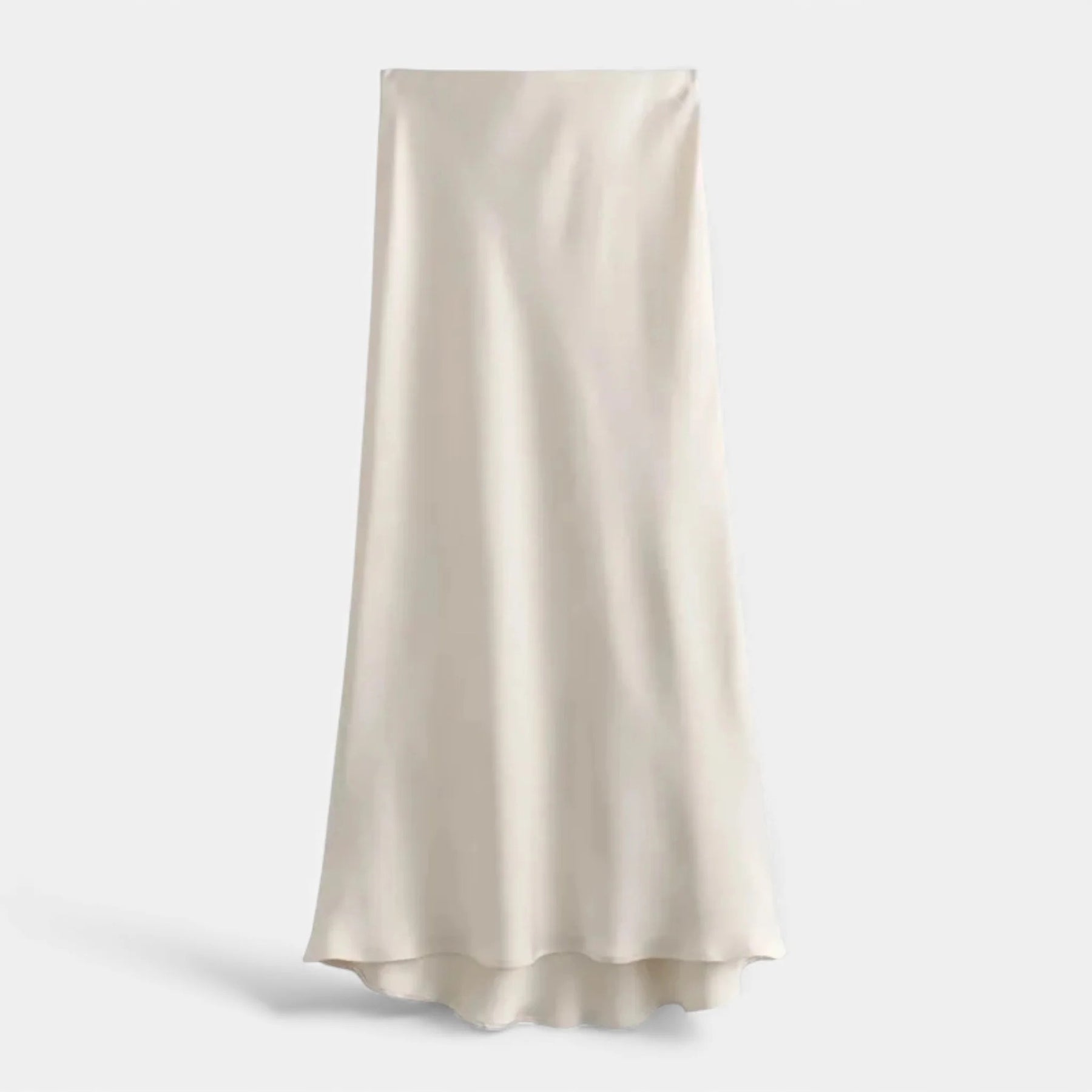 De midilange pasvorm en het A-lijn silhouet zorgen voor natuurlijke vloei bij elke stap, wat een elegante en discrete beweging creëert. Veelzijdig en geschikt voor alle seizoenen, past deze rok zowel bij een professionele look als bij een chique avondoutfit. Een essentieel kledingstuk voor wie op zoek is naar moeiteloze verfijning.