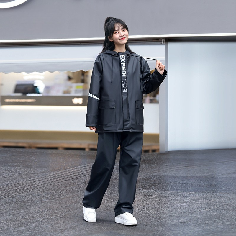 Dit regenpak voor dames met capuchon biedt de perfecte bescherming tegen de elementen. Het waterdichte materiaal zorgt ervoor dat je droog blijft, zelfs tijdens hevige regenbuien, terwijl de capuchon extra bescherming biedt tegen de regen. Het strakke ontwerp maakt dit regenpak zowel functioneel als modieus, ideaal voor zowel casual als actieve buitenactiviteiten. Of je nu naar de stad gaat of een wandeling maakt, dit regenpak is een must-have in je garderobe.