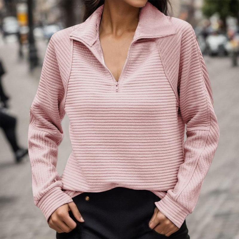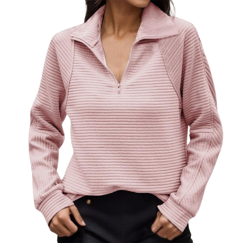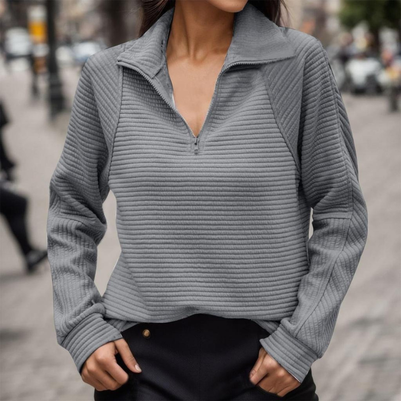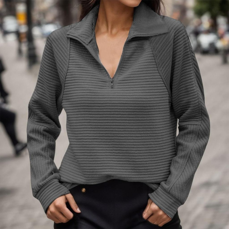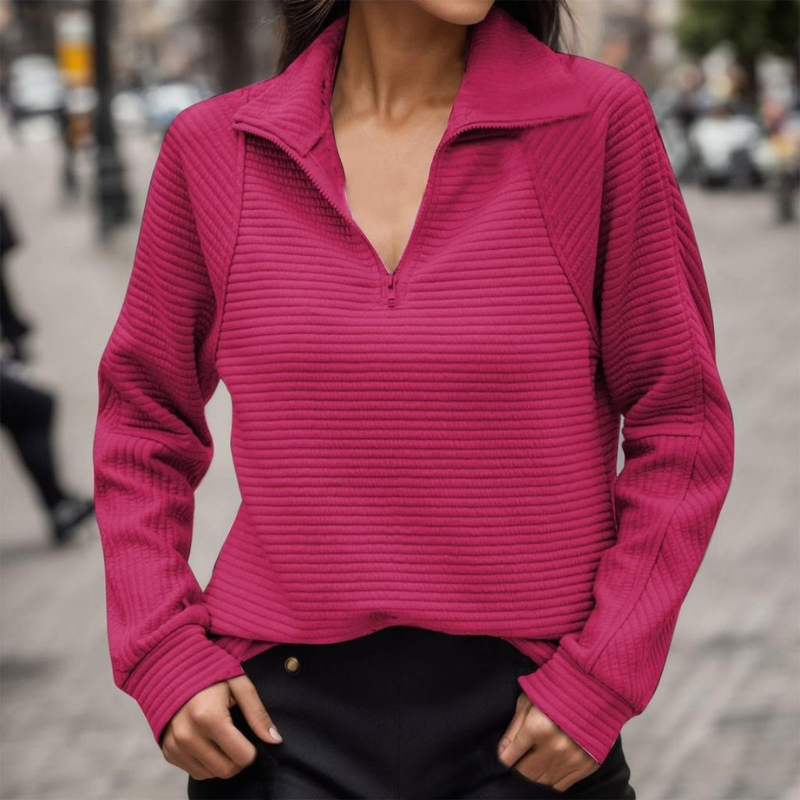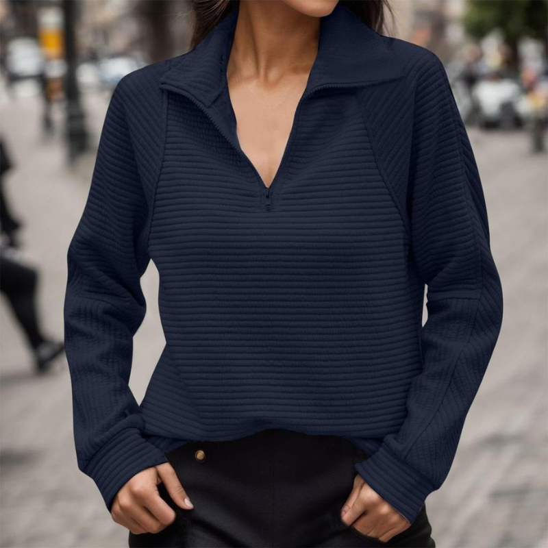 Mona | Warme Trui Dames | Casual V-Hals Trui met Rits en Kraag