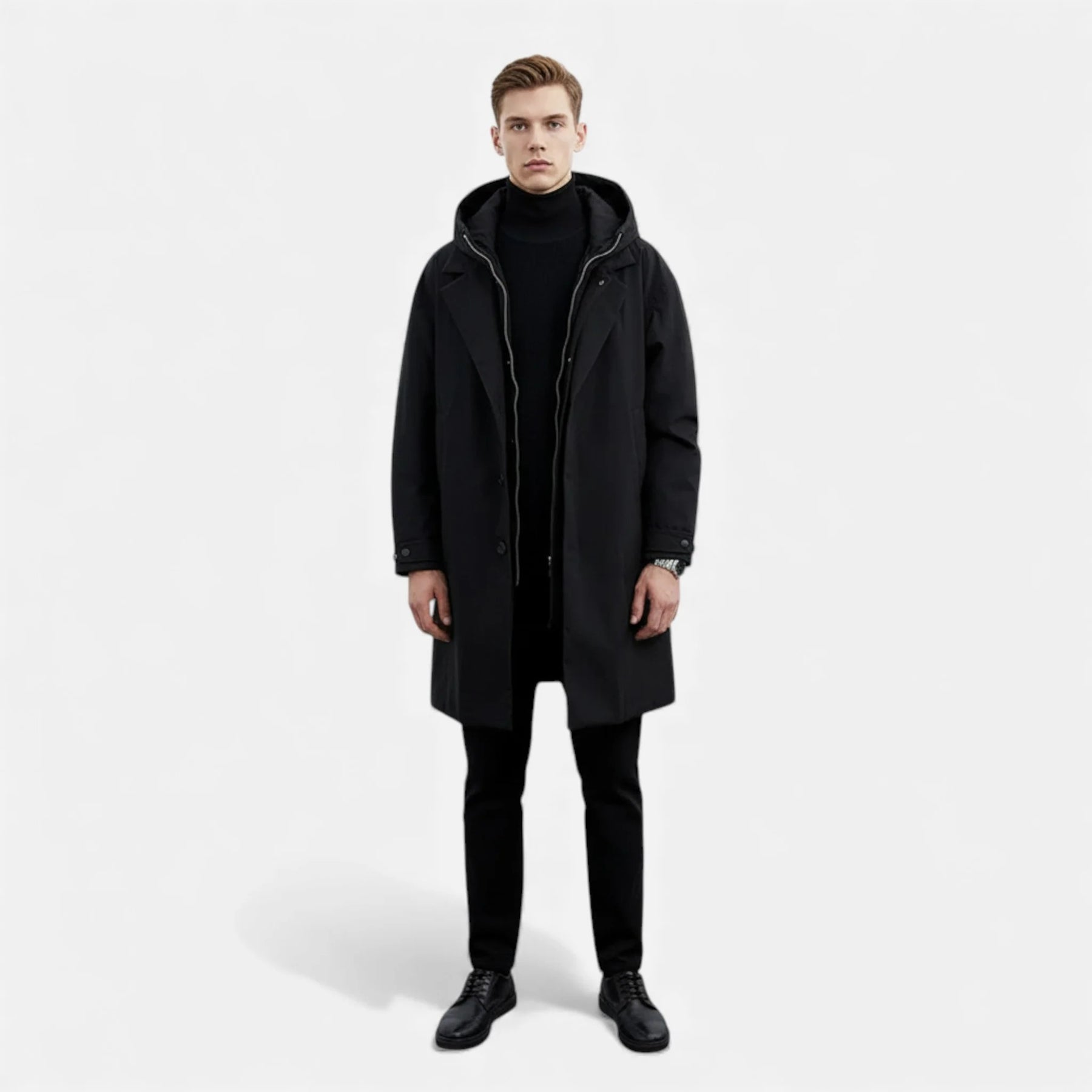 Ontdek de lange, waterdichte pufferjas van Sorata, geïnspireerd op de klassieke uitstraling van de trenchcoat maar ontworpen met moderne, omhullende bescherming. De elegante lengte, de gestructureerde capuchon en de royale isolatie vormen een verfijnde barrière tegen regen, wind en kou. Een jas voor wie op zoek is naar een krachtige présence, een statige silhouette en gecontroleerde warmte in de meest veeleisende omstandigheden.