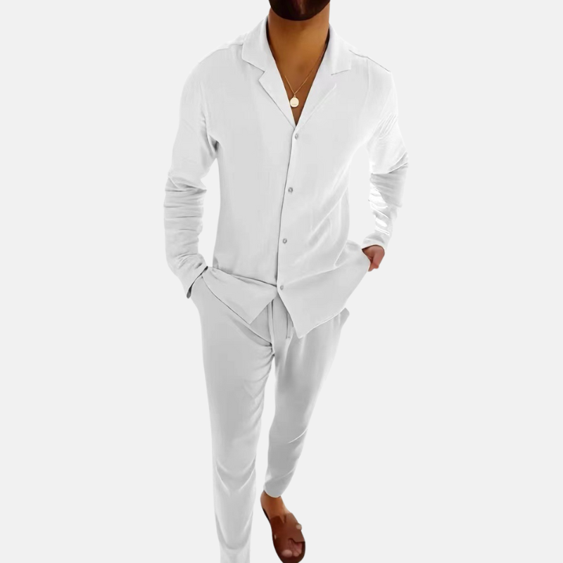 Deze luchtige en stijlvolle linnen set is perfect voor warme zomerdagen. Ontworpen voor ultiem comfort, biedt het een koel gevoel in elk klimaat. Met de Cris set zie je er moeiteloos elegant uit, of je nu thuis bent of op een zomers uitje.