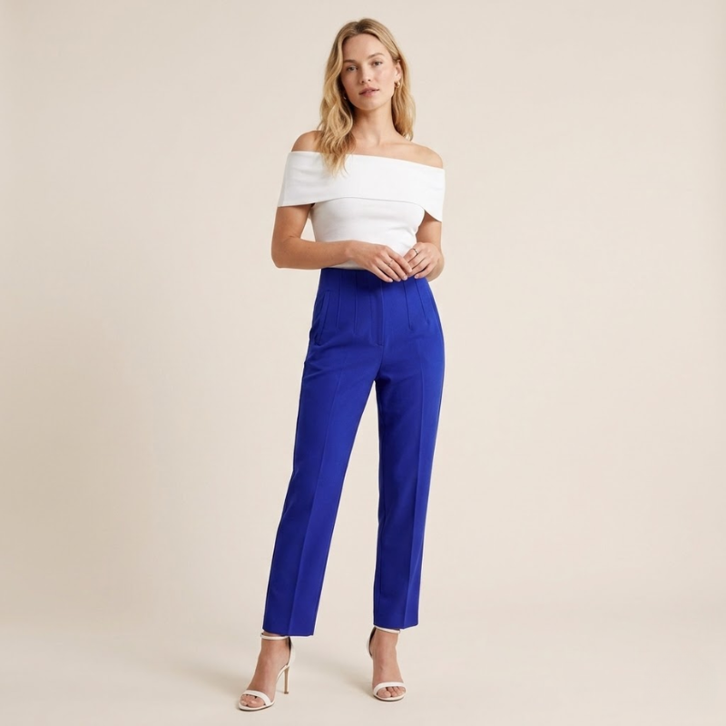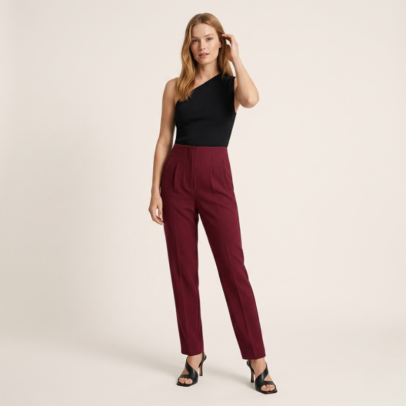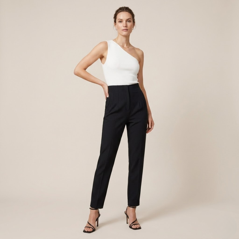 - Slim-fit snit en hoge taille voor een verfijnd silhouet