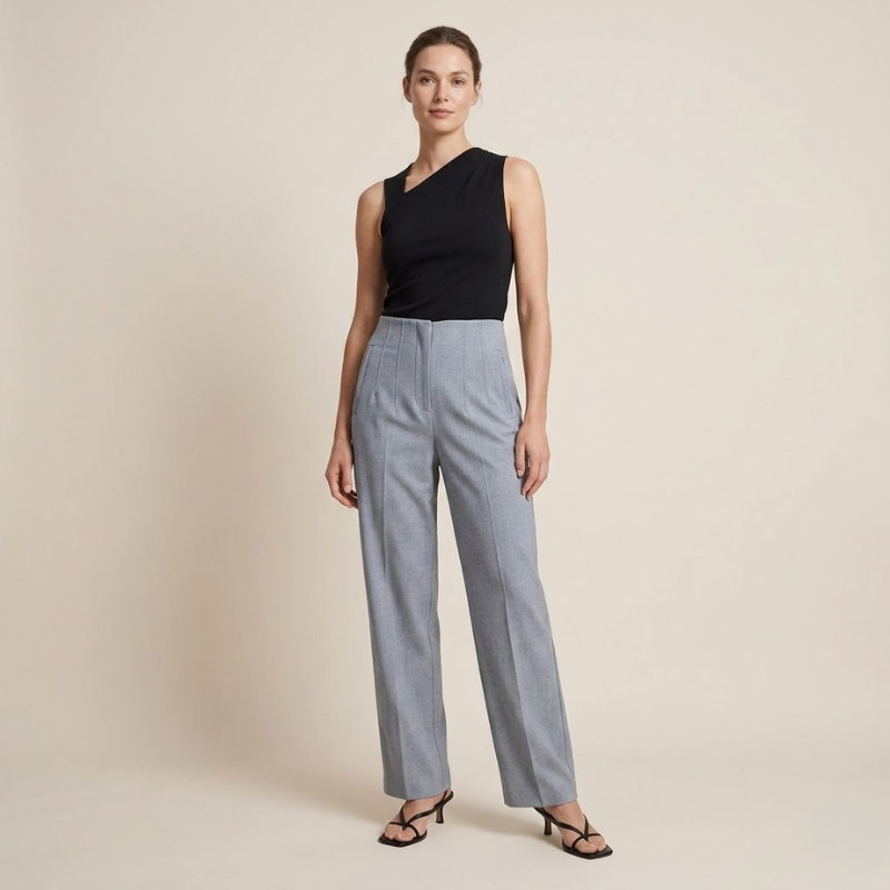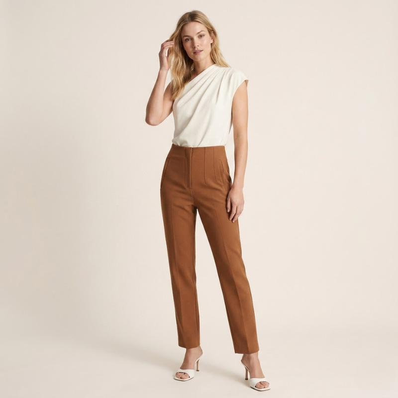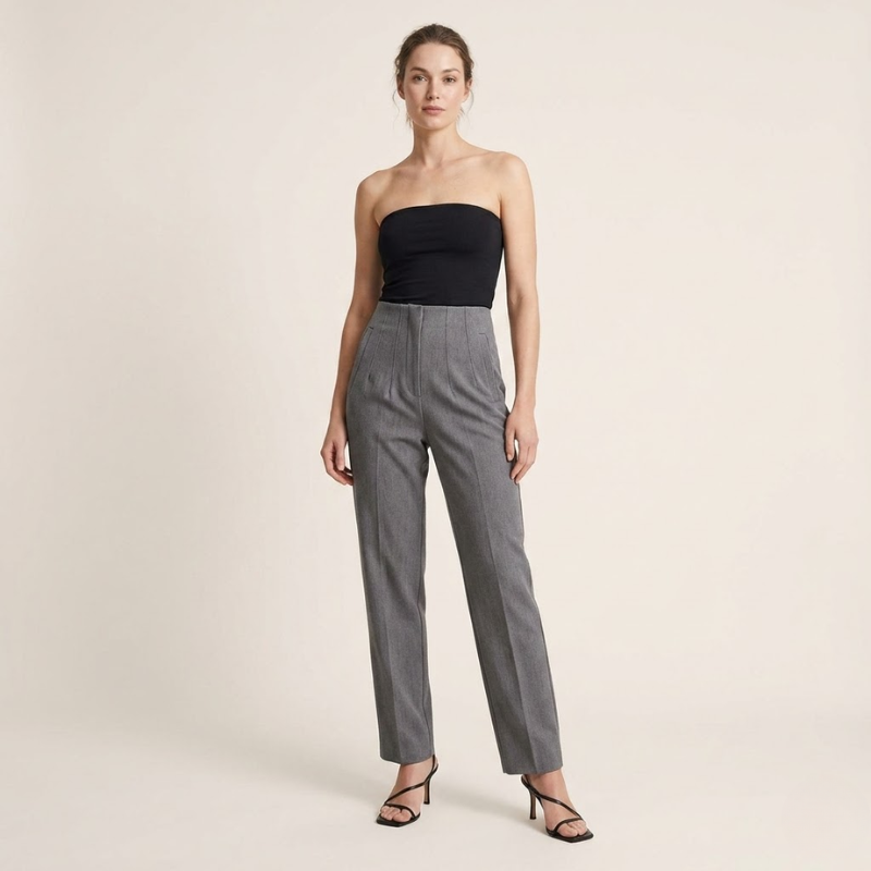 Sorata | Deze hoge taille damesbroeken bieden een elegante slim-fit en dagelijks comfort. De nauwsluitende snit accentueert de natuurlijke lijnen, terwijl de zachte en rekbare stof optimale bewegingsvrijheid garandeert. Perfect voor op kantoor, stedelijke uitstapjes of verfijnde gelegenheden, voegt deze broek een subtiel old-money accent toe aan elke outfit.