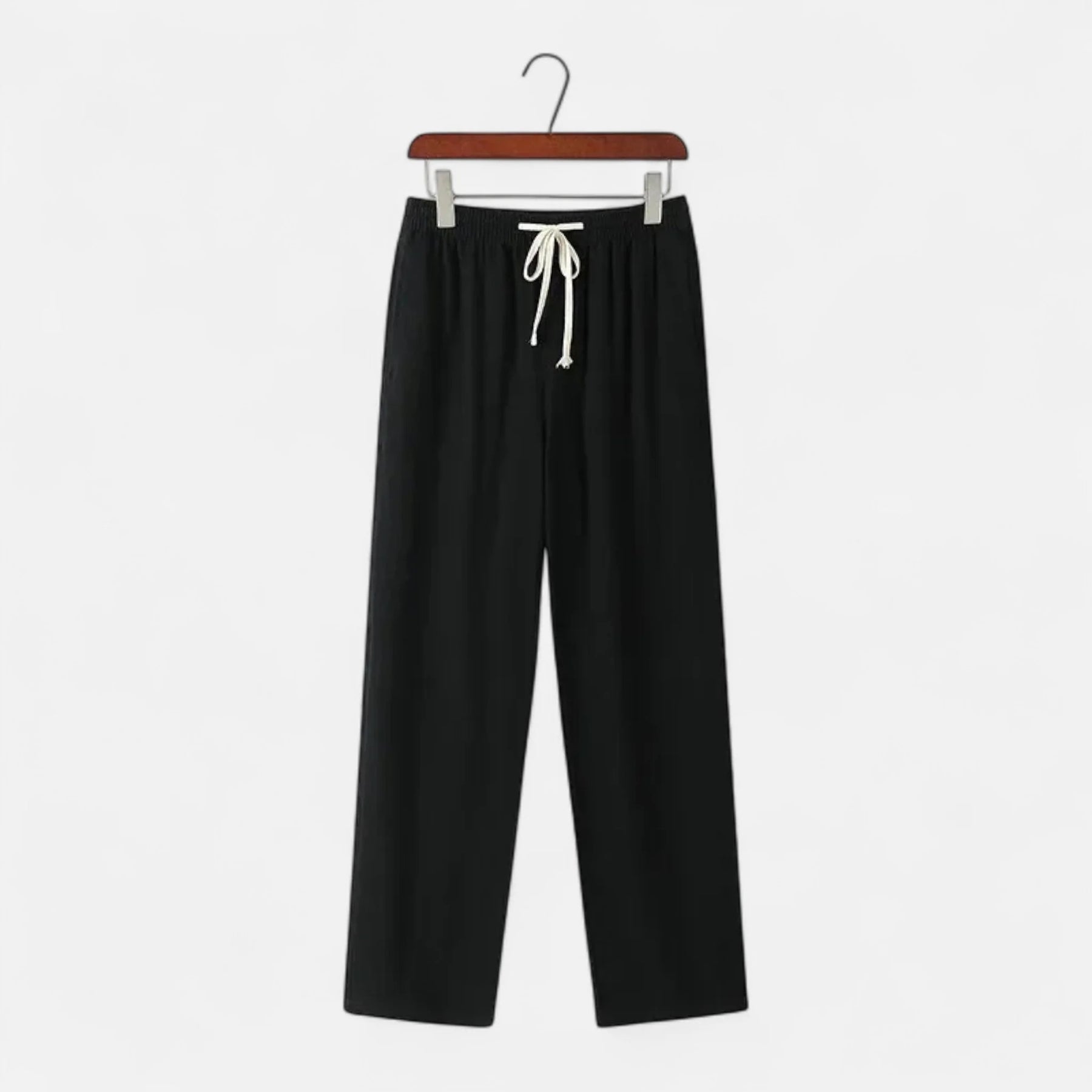 De katoen-linnenmix zorgt voor koel draagcomfort en natuurlijke zachtheid, terwijl de rechte pijpen tijdloze aantrekkingskracht geven. Deze broek belichaamt stille luxe en verfijnde eenvoud, en wordt een onmisbaar kledingstuk in je garderobe.